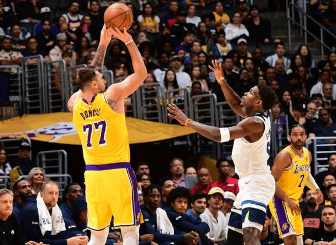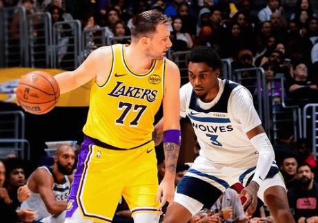 半場比賽戰(zhàn)罷,湖人68-63領(lǐng)先森林狼5分,東契奇半場砍下32分。