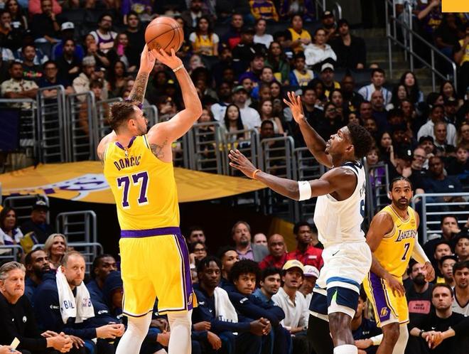 末節(jié)決戰(zhàn),東契奇再度超神,剛上場就連拿8分徹底打懵了森林狼隊;最終,湖人128-110大勝森林狼,拿到新賽季首勝。